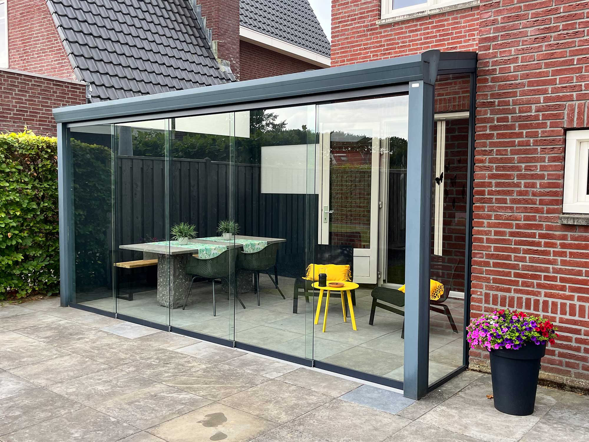 Uitbreiding met aluminium schutting delen + glazen schuifwand